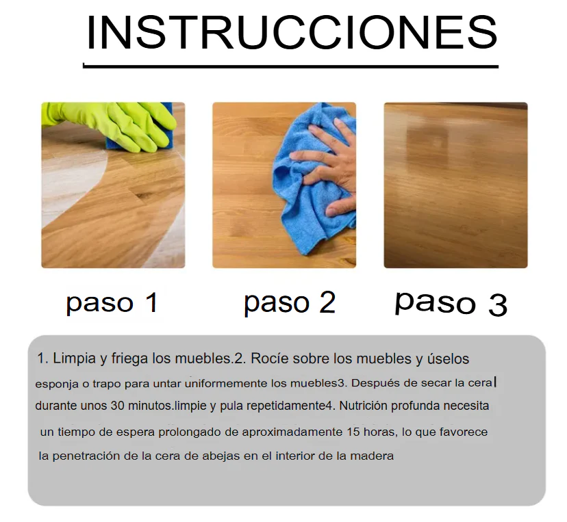 - 💧 Pulido duradero: Mantén tus muebles brillantes y protegidos.